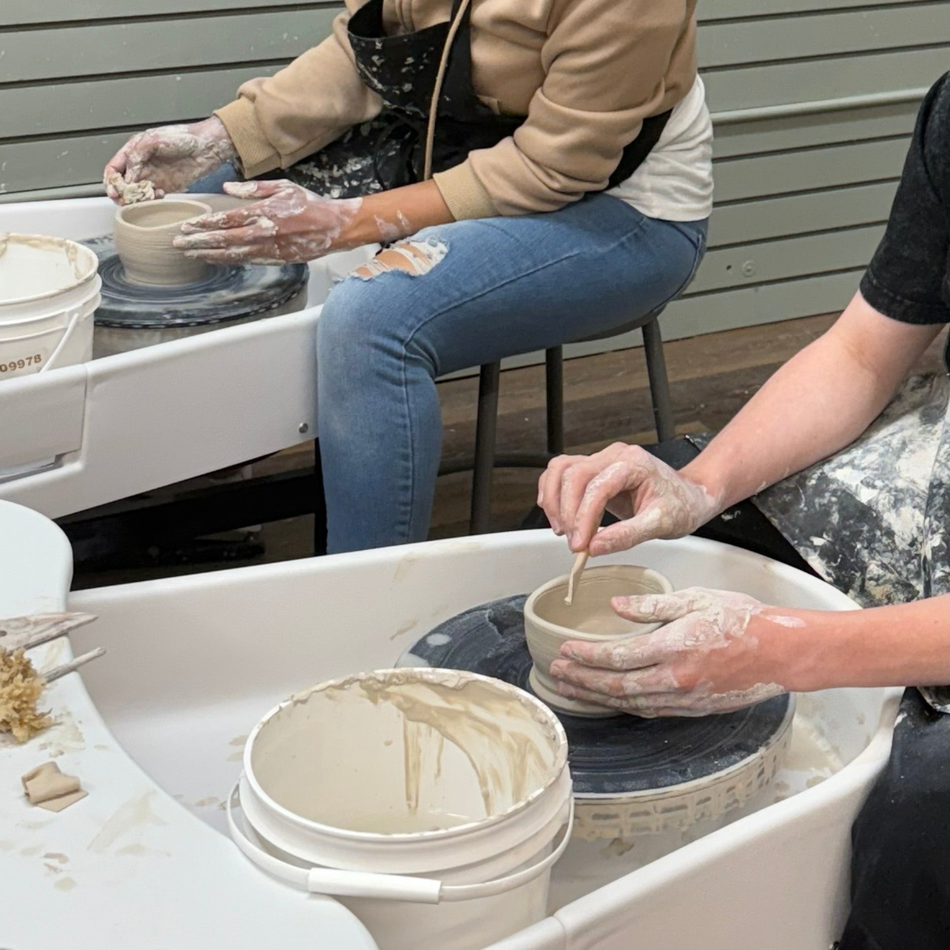 Learn to throw on the wheel Friday evening. Stop by Saturday morning or Sunday morning to trim and add a handle. Choose your glaze colors and your mug will be shipped to you in time to sip hot chocolate over the holidays. (mid-December)